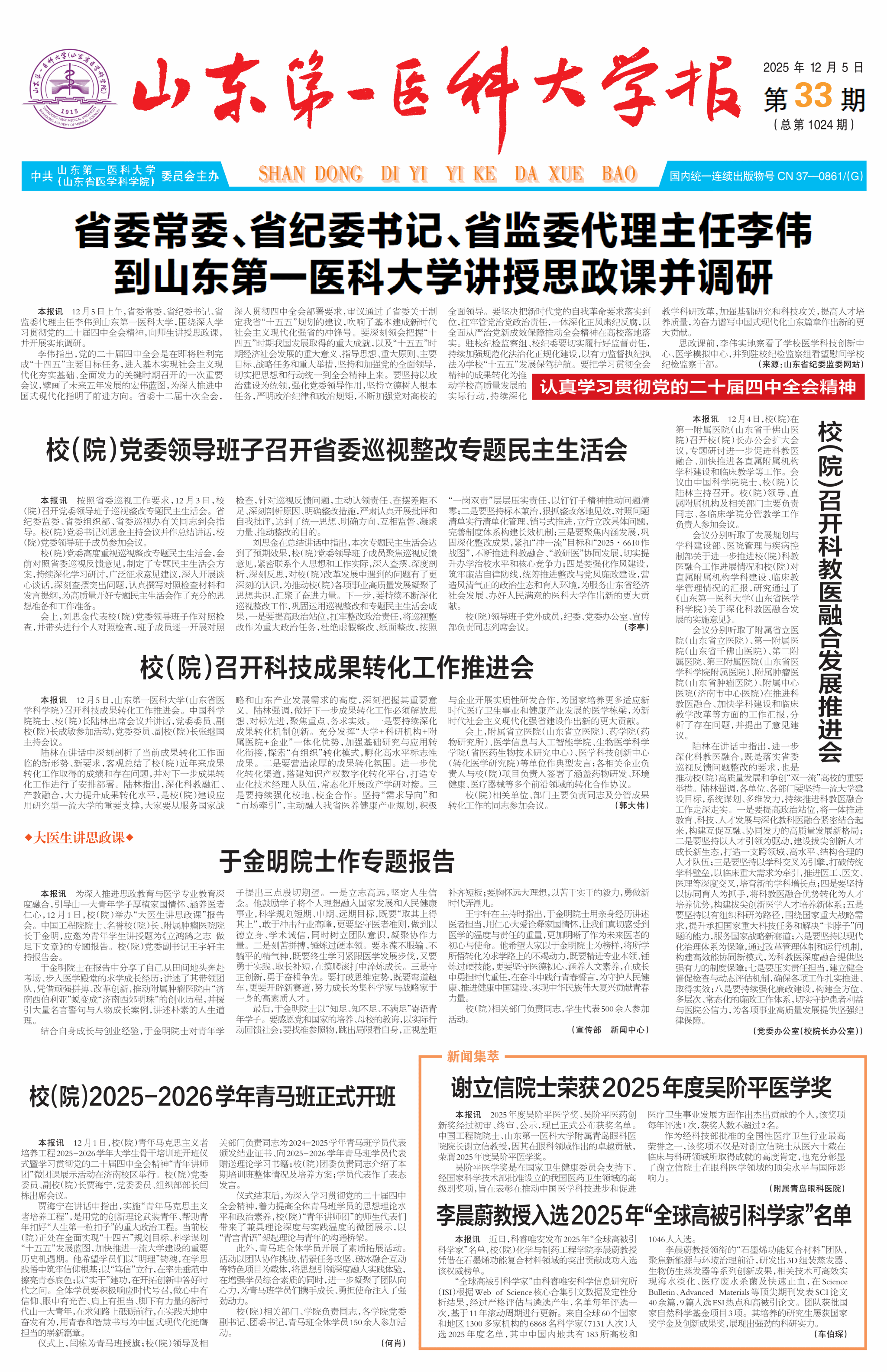 凝心聚力勇突破,全力以赴冲一流——山东第一医科大学(山东省医学科学院)召开202...