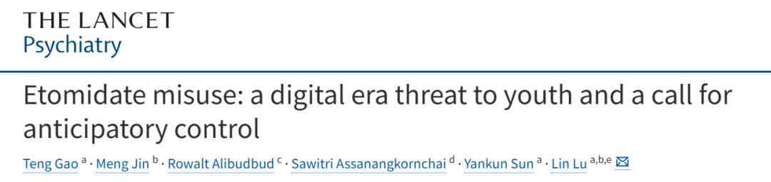 2025年10月,山东第一医科大学(山东省医学科学院)陆林院士团队在国际权威医学期刊《柳叶刀·精神病学》(The Lancet Psychiatry)发表题为“依托咪酯滥用:数字时代下对青少年的威胁及前瞻防控呼吁(Etomidate misuse: a digital era threat to youth and a call for anticipatory control)”的评论文章,深入剖析了依托咪酯滥用转型、数字扩散、监管不足并提出防控倡议。论文链接:https://doi.org/10.1016/S2215-0366(25)00267-6。文章聚焦依托咪酯在东亚及东南亚地区的快速扩散,指出其作为“新型数字媒介驱动的物质滥用”代表,已经对青少年群体造成依赖、肌阵挛、人格解体乃至自杀意念等严重风险。