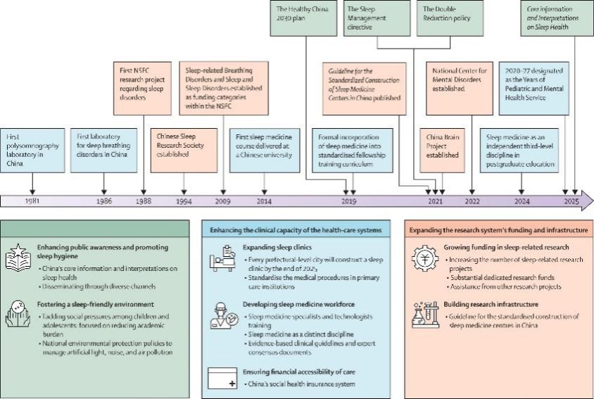 文章深入剖析了现存的挑战,指出挑战主要源于两大方面:一是影响睡眠的深层因素,包括高竞争性的社会文化(“内卷”)、公众对睡眠卫生的认知不足,以及人口老龄化与慢性病负担加剧;二是系统性限制,包括医疗资源(尤其是专业睡眠人才)分布不均,以及缺乏全国性、纵向的睡眠健康动态监测体系。