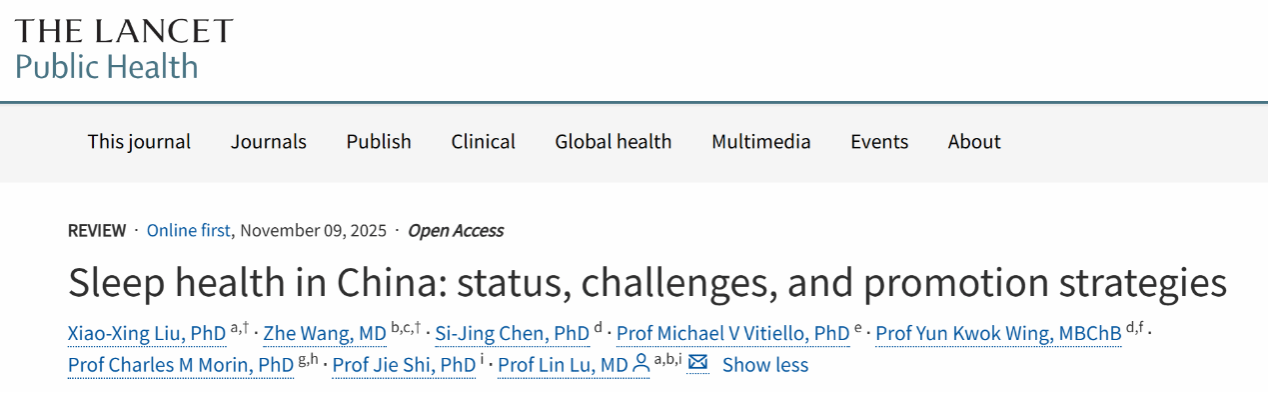 2025年11月,山东第一医科大学脑科学与类脑研究院陆林院士团队和北京大学合作在国际权威期刊The Lancet Public Health发表题为Sleep health in China: status, challenges, and promotion strategies的综述文章,论文链接:https://authors.elsevier.com/sd/article/S2468-2667(25)00250-6。北京大学第六医院刘晓星博士和山东第一医科大学脑科学与类脑研究院王哲博士为共同第一作者。文章系统阐述了中国睡眠健康与睡眠障碍的流行病学现状、应对策略及面临的主要挑战,并对未来发展路径进行了科学展望。