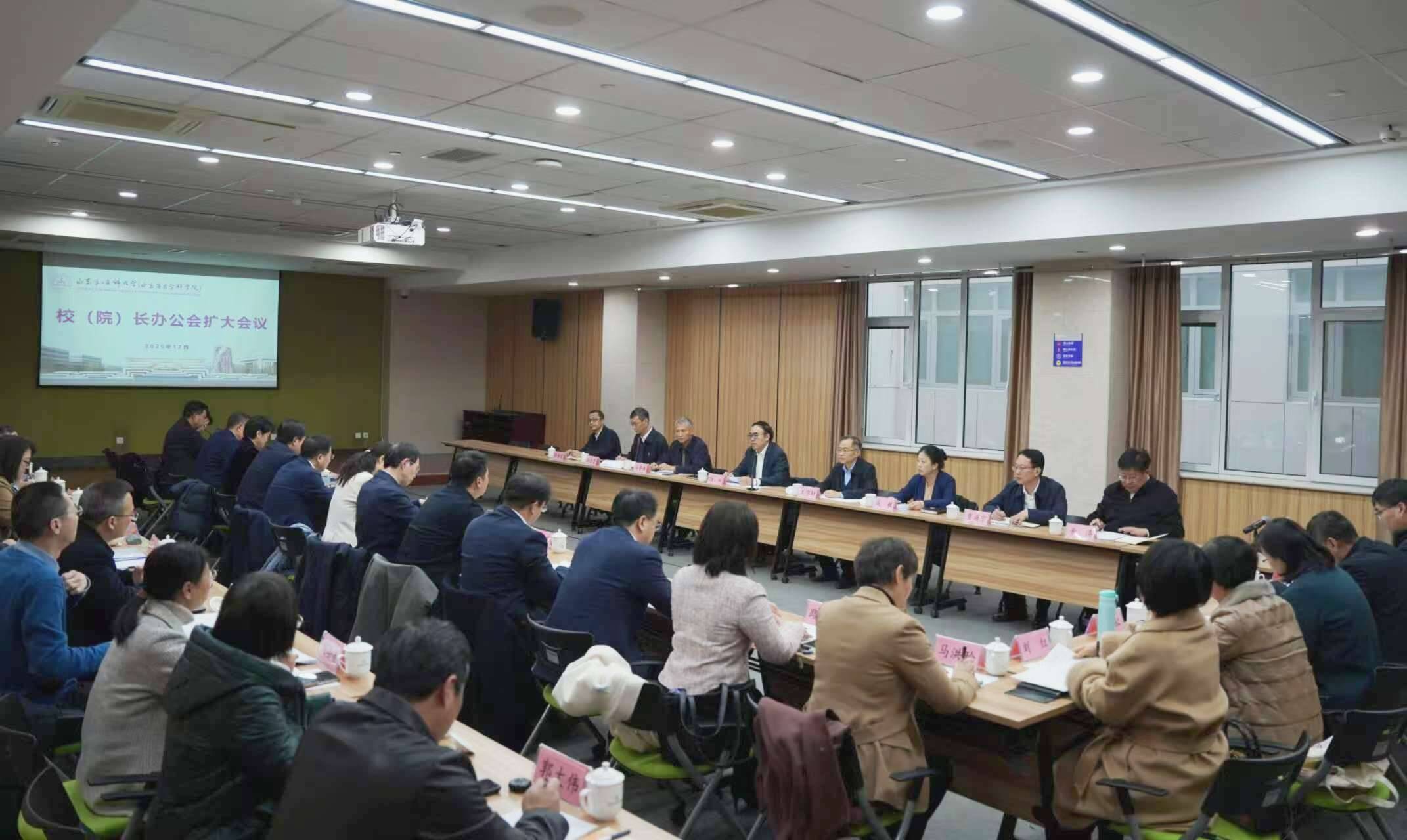 12月4日,校(院)在第一附属医院(山东省千佛山医院)召开校(院)长办公会扩大会议,专题研讨进一步促进科教医融合、加快推进各直属附属机构学科建设和临床教学等工作。会议由中国科学院院士、校(院)长陆林主持召开。校(院)领导、直属附属机构及相关部门主要负责同志、各临床学院分管教学工作负责人参加会议。