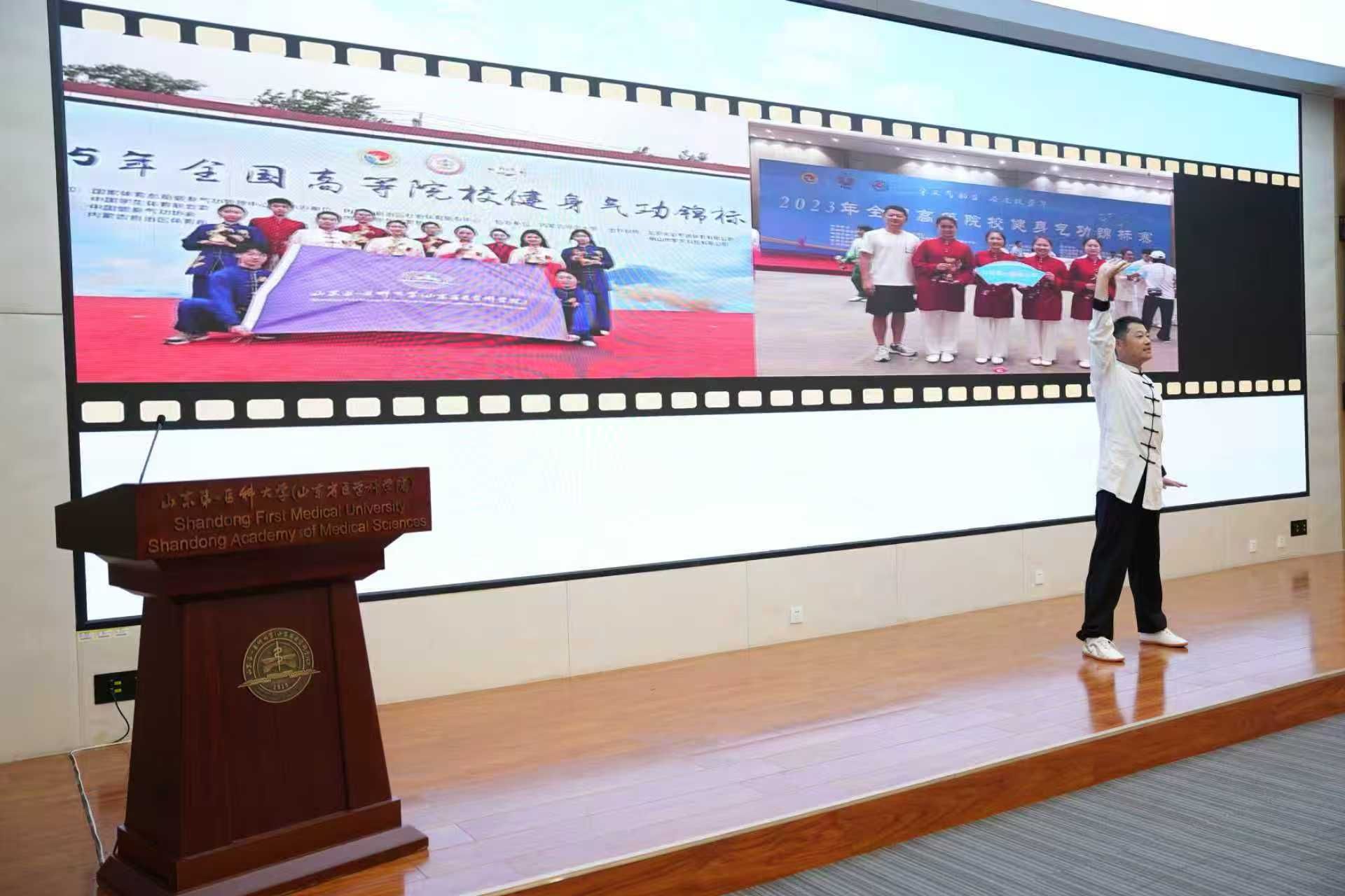 校(院)马克思主义学院教师徐宏霞、孙亚男与通识教育部教师李晓铭进行了“健康中国”思政大课教学展示,通过理论讲解与八段锦实践相结合的方式,生动呈现了思政课程与健康教育的有机融合。