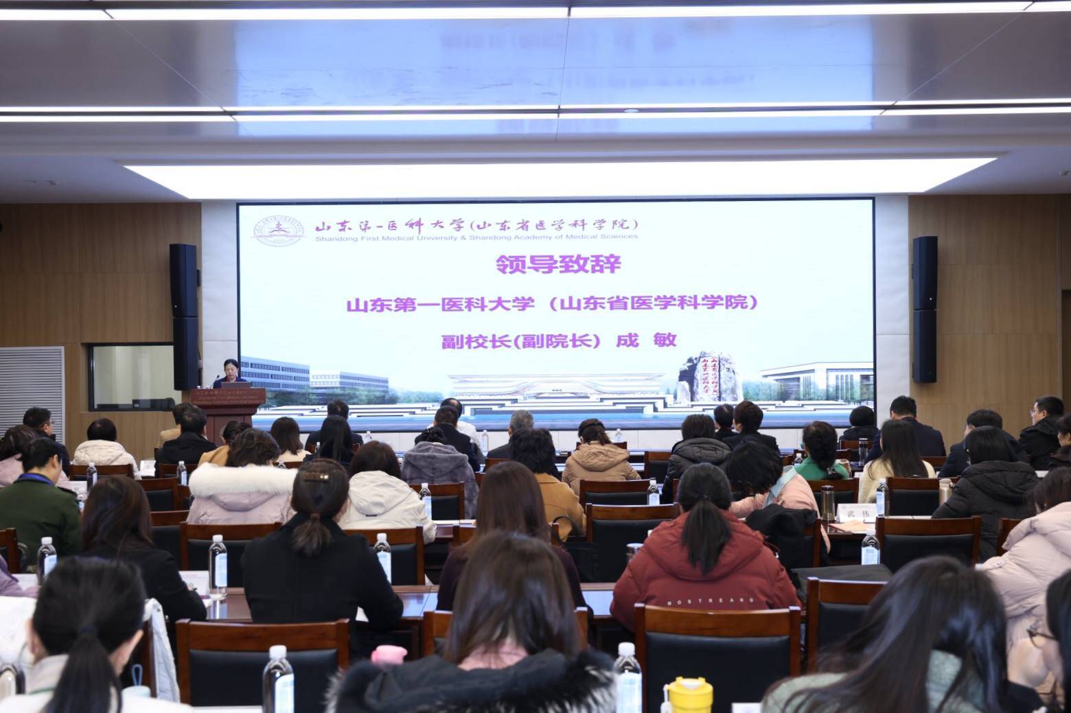 12月18日,校(院)2025年度临床实践教学工作会议在济南校区召开,校(院)党委委员、副校(院)长成敏出席会议并致辞。