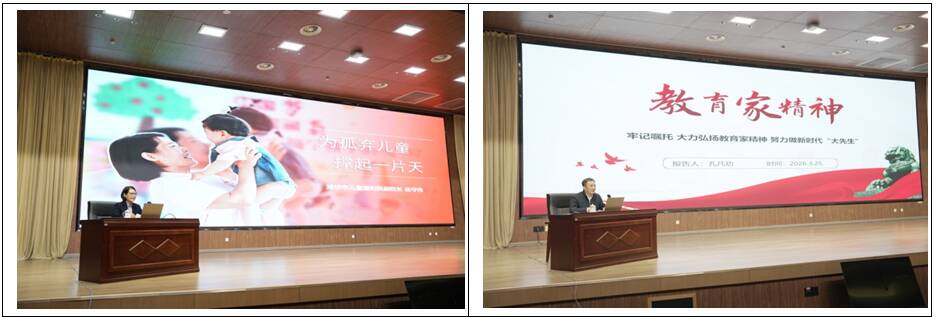 报告会上,杨守伟以《为孤弃儿童撑起一片天》为题,用真实感人的案例,分享了二十余年坚守儿童福利一线的动人故事,用实际行动诠释了“乐教爱生、甘于奉献”的仁爱之心,以无私奉献彰显了基层工作者的责任与担当,为全校教职工树立了生动的师德标杆。孔凡功以《牢记嘱托 大力弘扬教育家精神 努力做新时代“大先生”》为题作专题辅导,系统阐释了教育家精神的核心内涵,希望大家坚守立德树人使命,做“经师”和“人师”相统一的“大先生”,切实将师德师风融入教学、科研、医疗防治及管理服务的全过程。