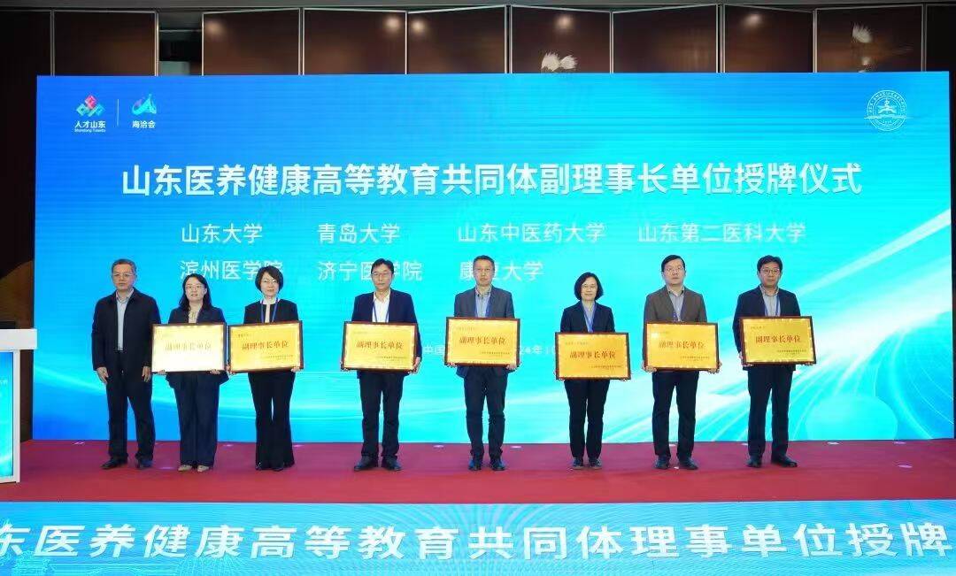 会上,举行了山东医养健康高等教育共同体成立仪式和理事单位授牌仪式。