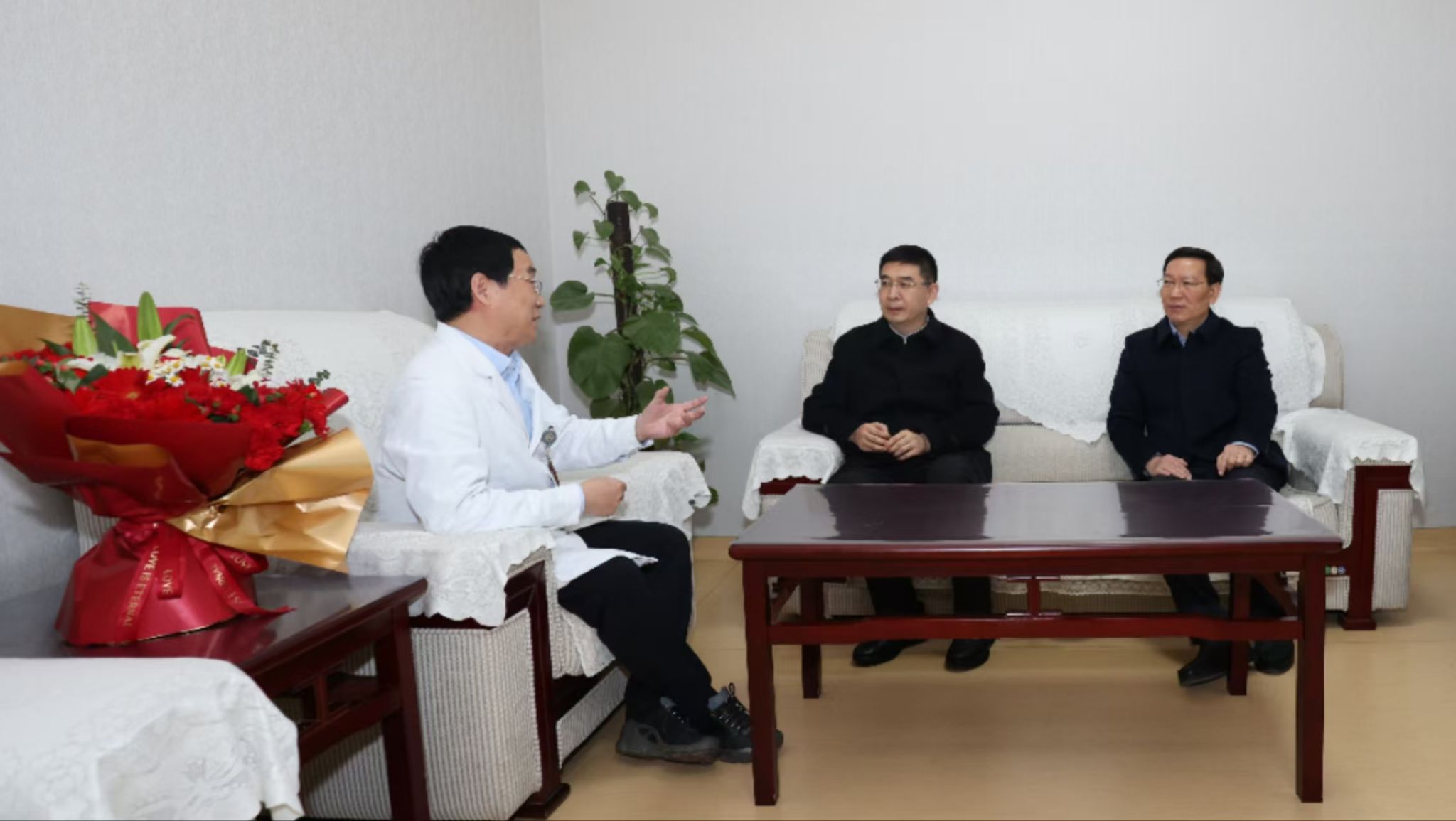 刘思金先后看望慰问了附属省立医院乳腺甲状腺外科主任田兴松教授和影像科主任、泰山学者特聘专家王锡明教授,关切询问专家们的工作和生活情况,详细了解他们的最新研究进展,深入交流校(院)高质量发展成绩,感谢他们为校(院)争创“双一流”大学作出的贡献,并认真听取有关意见建议。他希望专家们积极发挥自身专业优势和引领带动作用,依托大学及附属机构丰富的科教资源和临床资源,加大科研攻关力度,培育更多优秀医学人才,产出更多重大成果。