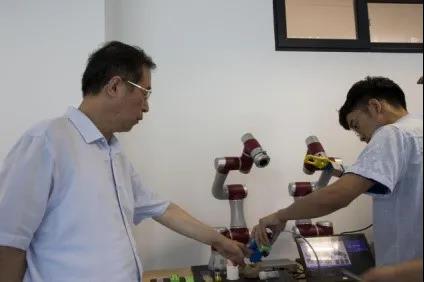 韩金祥现场察看了党建工作室、质谱大数据平台、智慧生物医疗机器人实验室、核酸大数据与智慧医学实验室。
