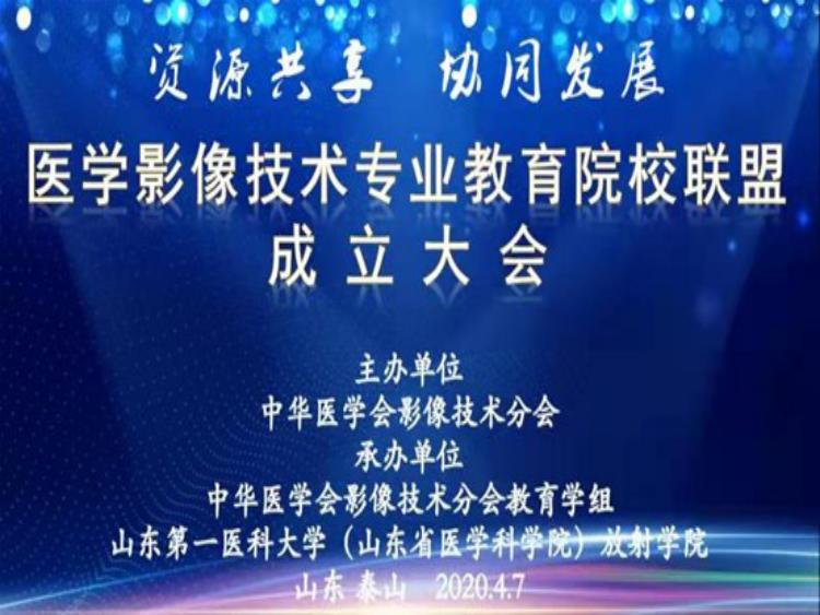 4月7日,由中华医学会影像技术分会和山东第一医科大学(山东省医学科学院)共同发起,联合国内开设医学影像技术教育的本科高校组建的医学影像技术专业教育院校联盟成立大会在线上举行。中华医学会影像技术分会主任委员李真林教授、校(院)党委委员,副校(院)长王鹏程出席会议并致辞;中华医学会影像技术分会候任主任委员马新武教授、中华医学会影像技术分会副主任委员吕发金教授出席。