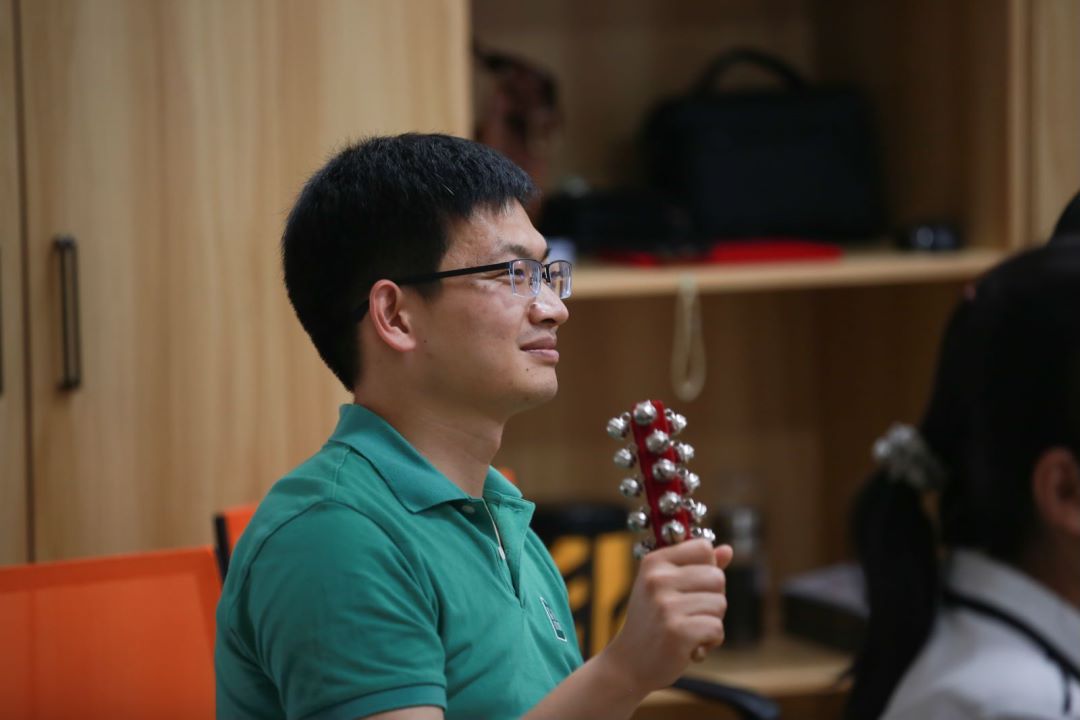 活动中,陈俊伊围绕“鼓动心灵 减压赋能”这一主题,介绍了音乐治疗的背景与原理,及其在提升人际互动、改善情绪、调整认知、提高审美等各个方面对个体心理健康水平的积极效果;创新探索体验式心理健康工作方式,将鼓圈、音乐冥想、身体打击乐等艺术疗法融入团体心理辅导活动。她带领大家运用鼓类、木制类、金属类、散响类等乐器即兴演奏,体验演奏打击乐器时触觉、视觉、听觉、感觉、运动觉等多方面的细微变化,感受当下内心真实的自我,提升心灵境界。