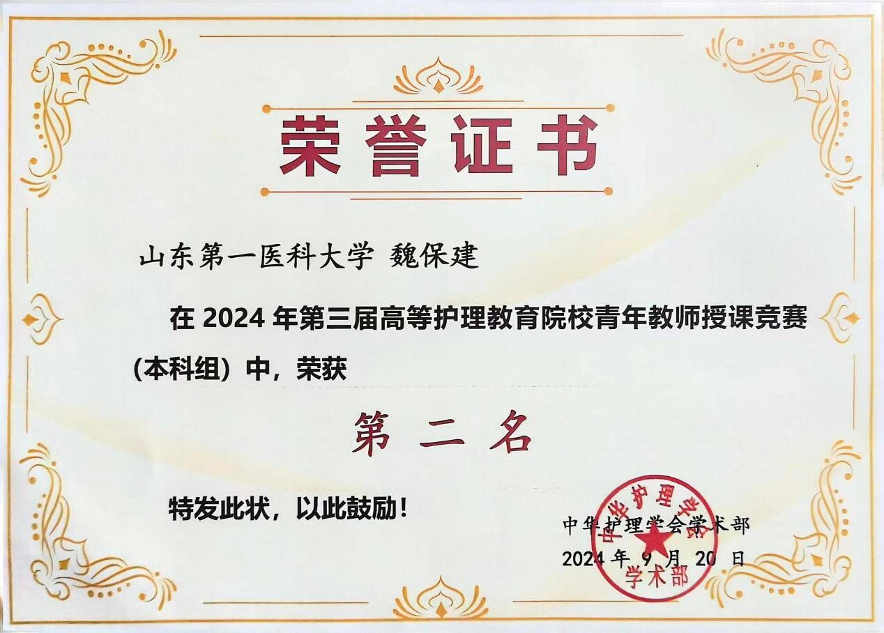9月19日,中华护理学会高等护理教育研讨会暨护理学院(校)长学术交流会议、第三届护理学生科研创新及职业发展交流会议在福建厦门召开。会议期间,举办了2024年第三届高等护理教育院校青年教师授课比赛,校(院)护理学院青年教师魏保建荣获(本科组)第二名。