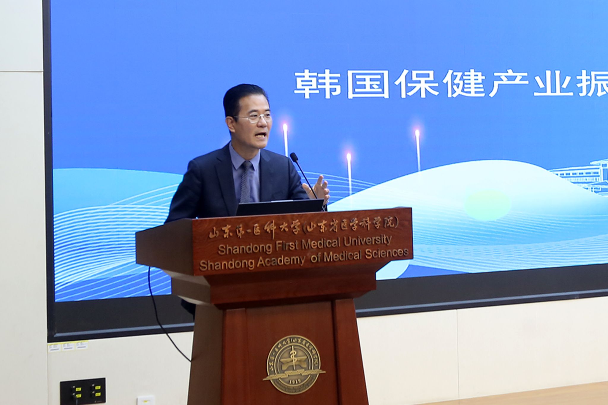 10月24日,校(院)口腔医学院与韩国庆北国立大学齿科医院签署合作协议并举办口腔学术合作交流会。韩国庆北国立大学齿科医院院长权大根教授、韩国国际医疗文化交流协议会会长权重发、韩国庆北国立大学齿科医院秦明旭教授、韩国保健产业振兴院支社长白承洙一行来访。校(院)党委委员、副校(院)长王宇轩出席并致辞。