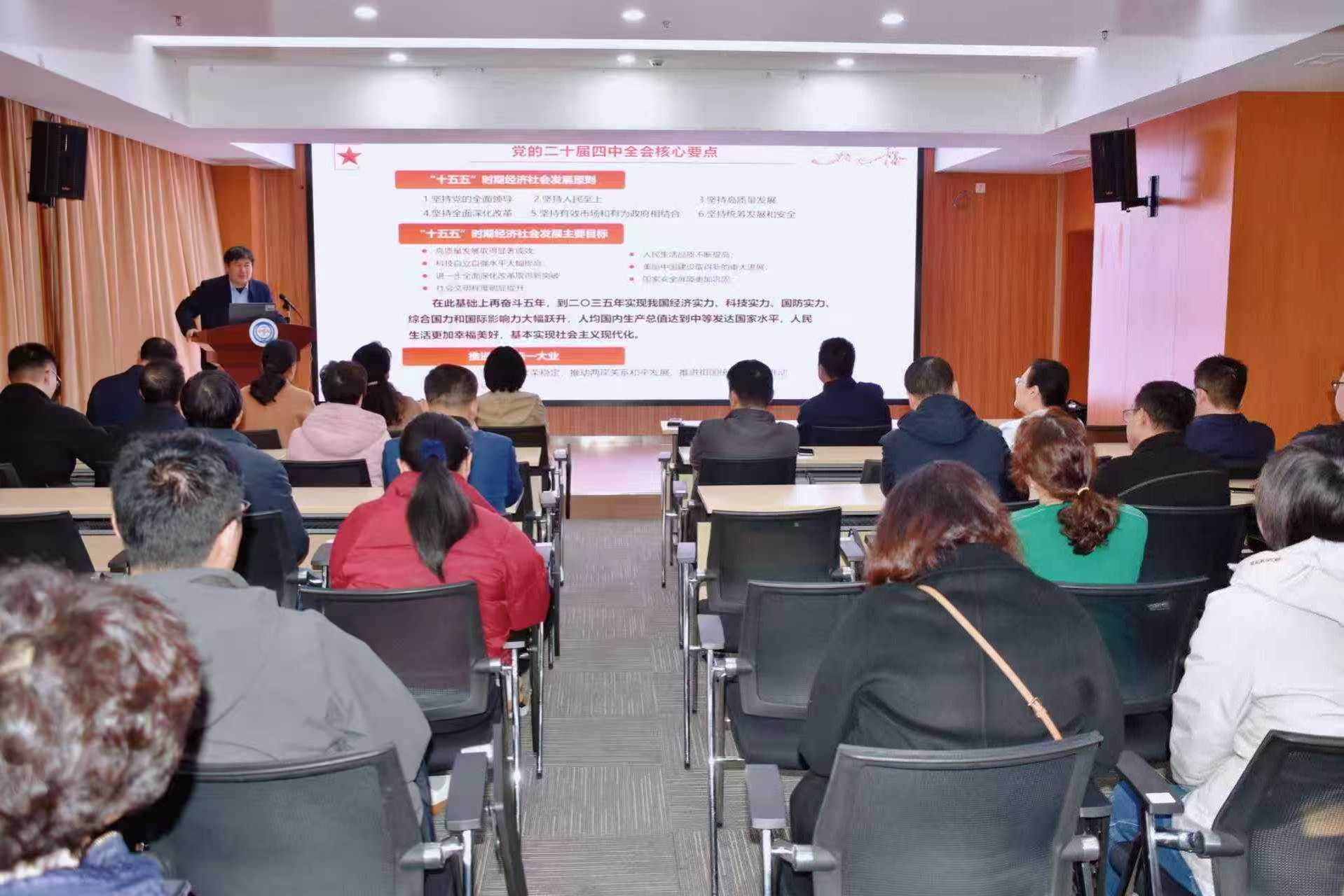 张福仁通过回顾中国共产党领导全国各族人民在革命、建设和改革征程中,实现从站起来、富起来到强起来的伟大飞跃的光辉历程,深刻阐释了党的二十届四中全会的重大意义。随后,他带领参会人员集体学习了《中国共产党第二十届中央委员会第四次全体会议公报》的核心内容,重点解读了“十五五”时期经济社会发展的重要原则、主要目标以及关于卫生健康领域的重要工作部署。