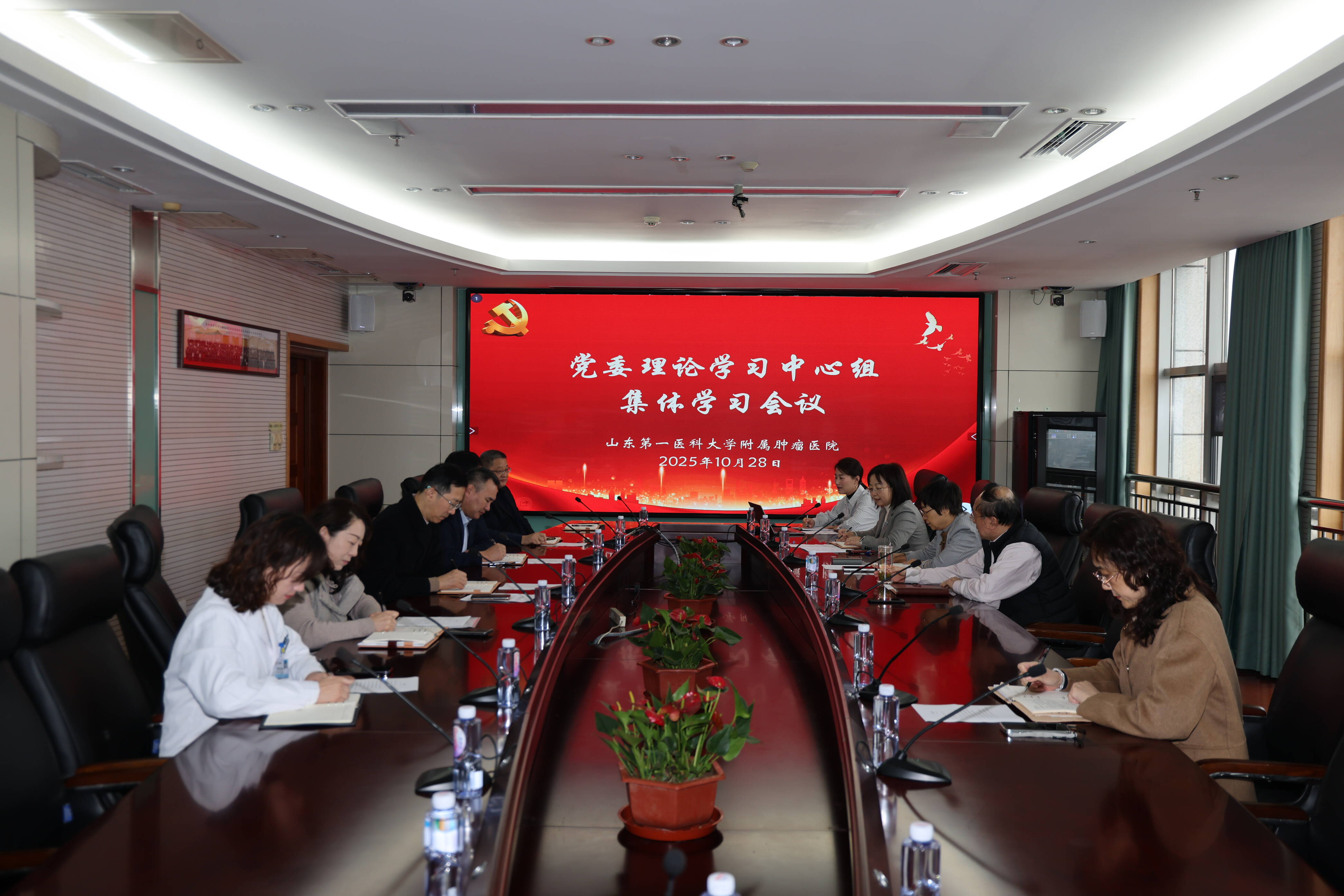 10月28日,山东第一医科大学附属肿瘤医院召开2025年第十一次党委理论学习中心组集中学习会议,传达学习党的二十届四中全会精神。党委理论学习中心组成员参加会议。
