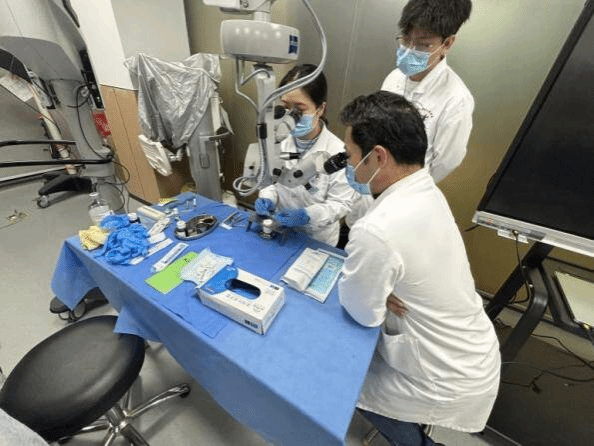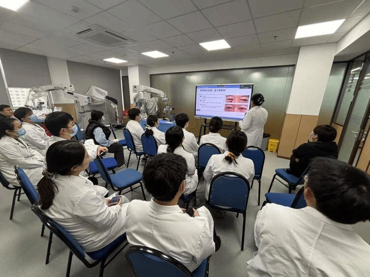 随后,角膜病科副主任医师王爽系统讲解了角巩膜缝合的适应证、缝合原则、缝线选择、进针角度、打结技巧及并发症处理等关键理论知识,尤其强调了缝合操作对术后视觉质量的重要影响。