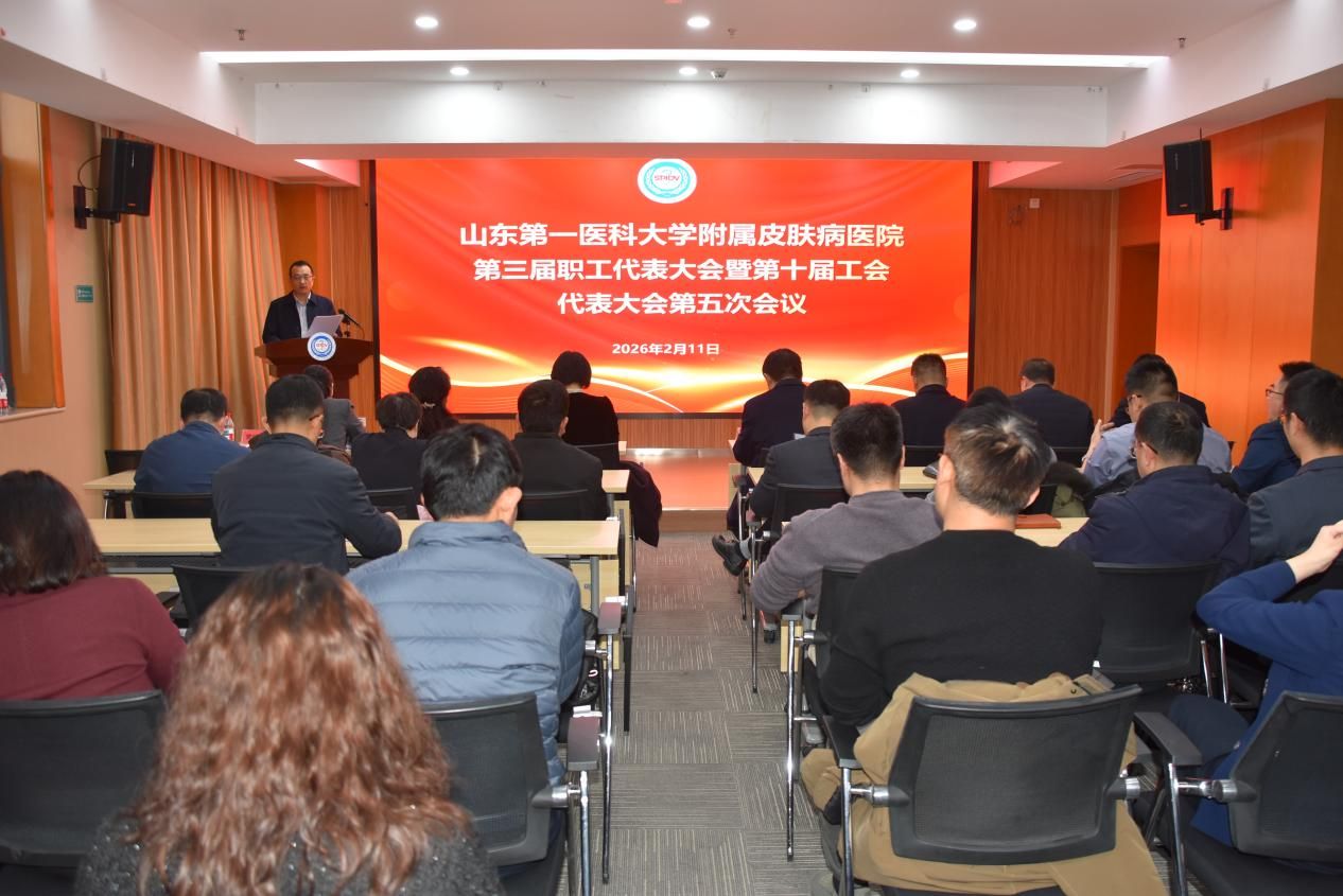 2月11日,山东第一医科大学附属皮肤病医院召开第三届职工代表大会暨第十届工会代表大会第五次会议。会议由党委副书记、工会主席田洪青主持。