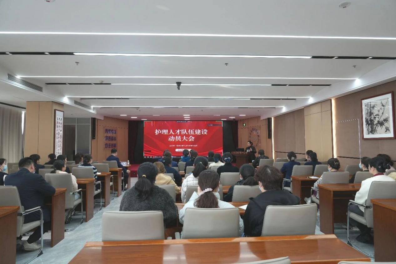 为深入贯彻落实医院高质量发展战略部署,全面加强新时代护理人才队伍建设,优化护理人才梯队结构,提升护理专业技术水平与综合服务能力,4月7日下午,附属青岛眼科医院在学术报告厅召开护理人才队伍建设动员大会。中国工程院院士、院长谢立信教授,党委书记、副院长乔镇涛,院长助理、院士办主任林萍,相关职能部室主任、各科室护士长以及护理骨干等参加会议。