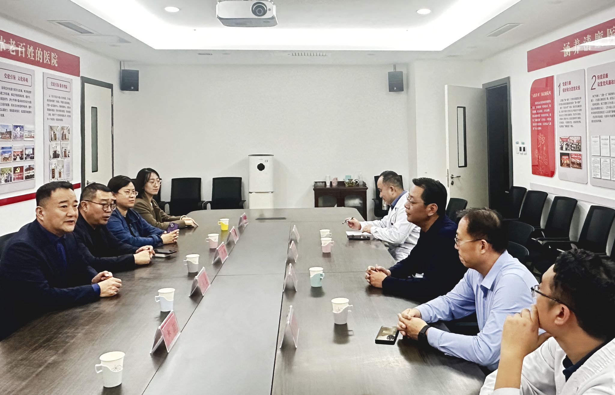 会议期间,双方围绕帮扶目标、任务分工与实施细节等内容进行了沟通交流,致力于共同探索出一条提升基层医院综合服务能力的有效路径,为筑牢基层健康网底、保障沂水老区人民健康福祉贡献更大力量。