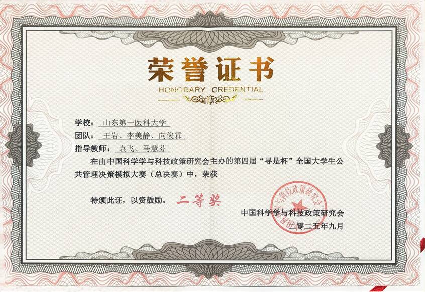 9月20日至21日,第四届“寻是杯”全国大学生公共管理决策模拟大赛(总决赛)在西安交通大学举行,校(院)医药管理学院2023级公共事业管理专业王岩、李美静、向俊霖与来自北京大学、北京航空航天大学、北京师范大学等全国100所高校的100支队伍同台竞技,荣获全国二等奖。