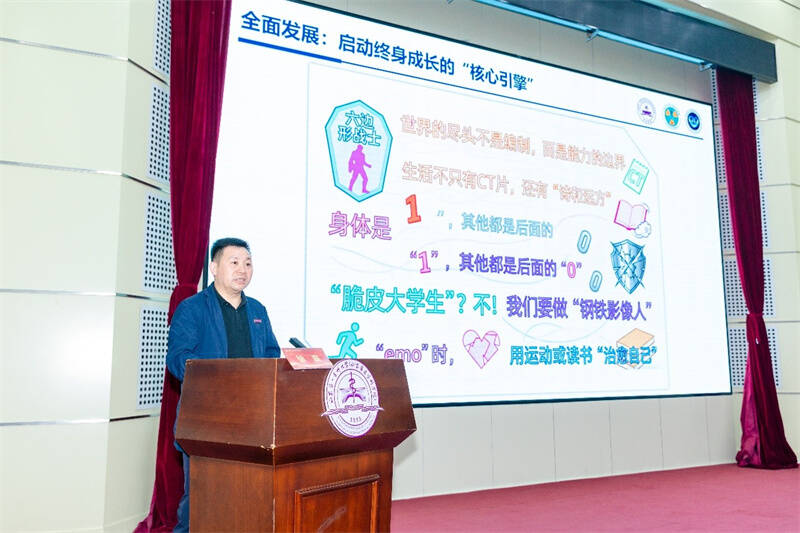 首都医科大学附属北京安贞医院医学影像科主任、影像医学与核医学专业2001级校友徐磊,以《执光影之剑 守生命之托,一名影像科医生的成长之路》为主题分享成长历程。他叮嘱学弟学妹“医学侦探”需筑牢解剖学、病理生理学等基本功,以英语能力与科研素养为“望远镜”,助力接轨国际前沿。从规培期间拜师学艺领悟诊断思维,到工作中化身临床“导航雷达”保障诊疗高效,他始终关注片子背后患者的期盼,践行医者仁心。在行业内,他牵头探索AI在心血管影像领域的创新应用,从冠脉自动分割到心肌梗死智能诊断,推动精准医疗发展;更以“终身学习”理念破除“躺平”思想,号召后辈锤炼能力、守护健康中国,彰显出“敬佑生命、勇攀高峰”的思政底色。