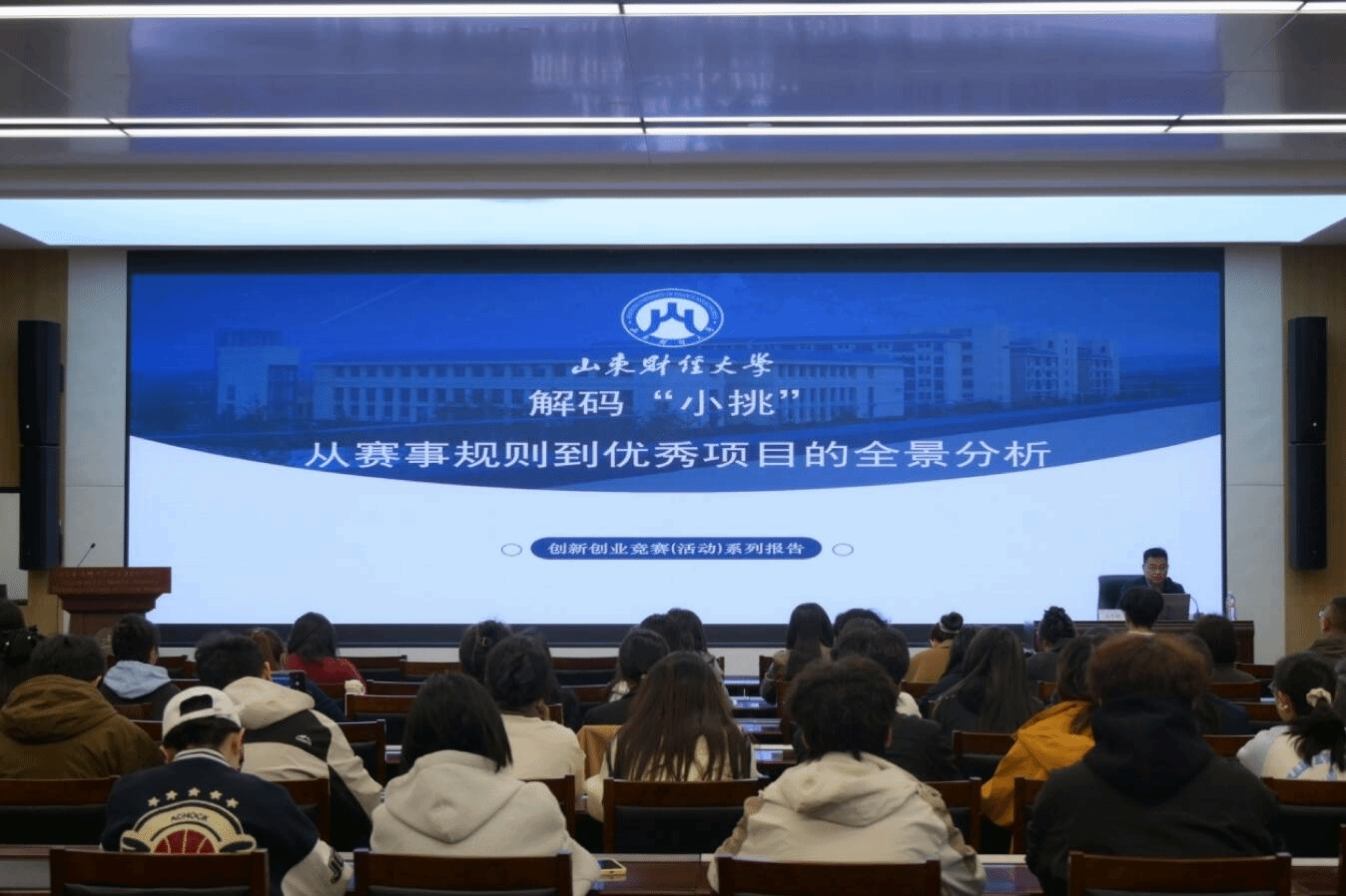 山东财经大学团委副书记谷学峰聚焦赛事规则,系统梳理“小挑”发展历程、参赛资格、七大赛道设置,清晰区分“小挑”重创业实践、“大挑”重学术科技的赛事定位,详解校赛-省赛-国赛三级赛程与评审规则,帮助同学们快速吃透赛事核心。