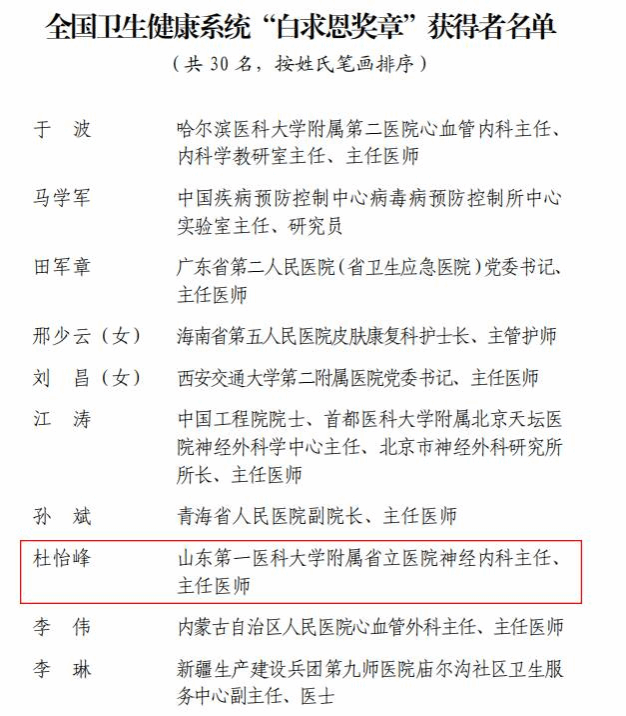 董亮教授与杜怡峰教授此次获得的奖项是全国卫生健康系统的最高荣誉之一,代表了行业内的最高水平,是对个人工作业绩、专业能力、职业道德等方面的高度认可。希望广大医护员工以董亮教授与杜怡峰教授为榜样,深耕岗位,拼搏奋进,以实际行动践行新时代“敬佑生命、救死扶伤、甘于奉献、大爱无疆”的崇高职业精神,坚定扛牢“走在前、挑大梁”使命担当,为推进健康中国、健康山东事业高质量发展作出积极贡献。