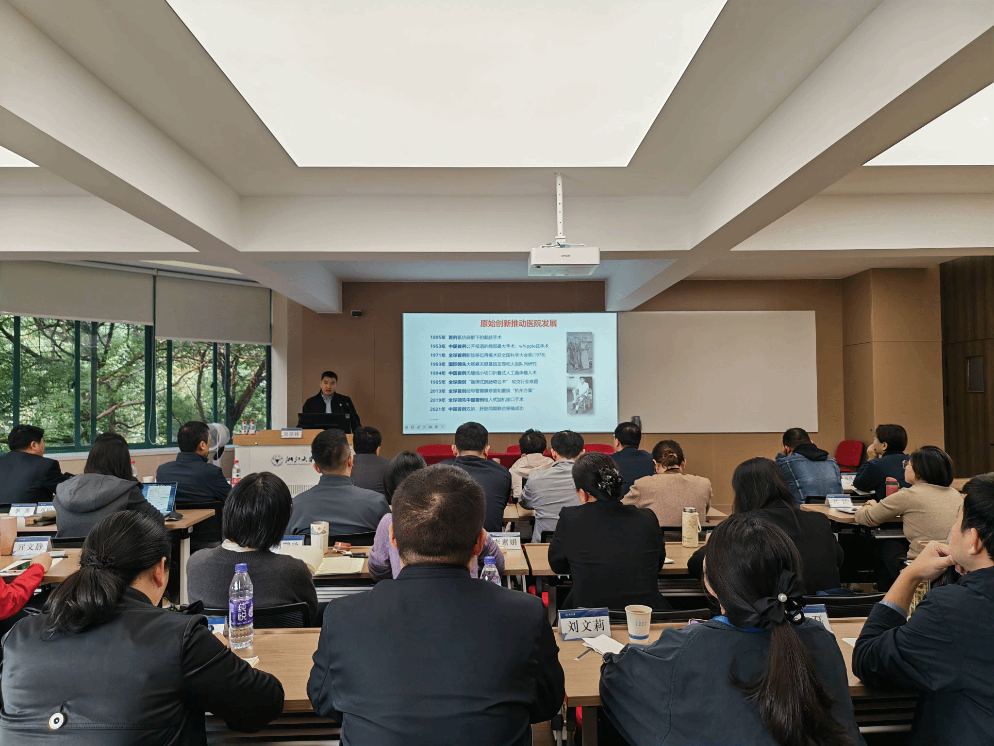 研修班邀请浙江大学医学院附属邵逸夫医院原党委书记刘利民、浙江大学医学院附属第二医院原党委书记陈正英,浙江中医药大学医院管理处许超、浙江大学医学院第二附属医院医务部吴培林分别作《全面提升医疗质量和安全管理》《医院临床科室成本与绩效管理实践》《医疗质量安全及医疗纠纷防范与处理》《当前形势下的医患沟通与医患纠纷处理》主旨报告。